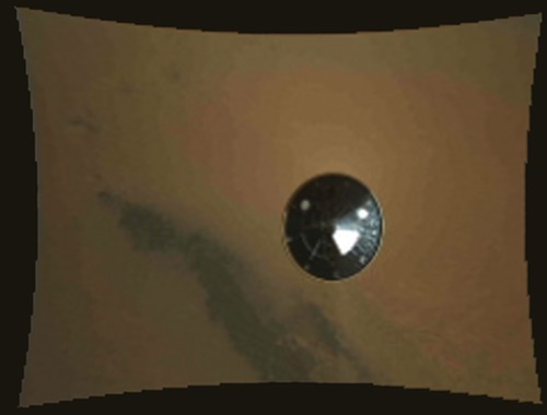 yg mengambil foto pendaratan NASA – Mars Reconnaissance Orbiter dan ketika pelindung panas dilepaskan. MARDI atau Mars Descent Imager instrument di Curiosity juga melakukan pemotretan