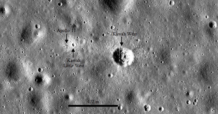 Saat resolusi kembali ditingkatkan, kawah Little West pun mulai terlihat sebagai bintik kecil tatkala batang skala menunjukkan angka 1.700 meter. Ketika ditingkatkan kembali, kawah makin terlihat jelas dan menunjukkan ciri-ciri yang sama dengan kawah West sebagai kawah muda, hanya diameternya jauh lebih kecil. Pada saat batang skala berada di angka 700 meter, bagian bawah modul bulan Apollo 11 mulai terlihat meski hanya sebagai bintik kecil yang sulit dibedakan dengan fitur-fitur permukaan Bulan lainnya disekelilingnya. Namun hanya pada resolusi terbesar, yakni saat batang skala menunjuukkan angka 200 meter, saja bagian bawah modul Bulan terlihat dengan jelas. Menjulang setinggi 3 meter di bawah penyinaran Matahari yang condong ke barat membentuk bayang-bayangnya yang cukup jelas, bagian bawah modul Bulan Apollo 11 ini cukup menonjol di tengah lingkungannya. Samar-samar jejak langkah Armstrong yang mengarah ke timur (menuju tepi kawah Little West) dan kemudian kembali lagi untuk memasang seismometer dan cermin retroreflektor pun terlihat.