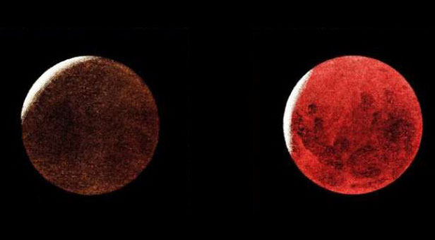 Fenomena ini sudah dipahami Johannes Kepler semenjak fajar astronomi modern bersemi lebih dari 4 abad silam seperti tertera dalam “Astronomiae pars Optica” (1604). Inilah penyebab mengapa dalam puncak gerhana, Bulan tetap terlihat meski jauh lebih redup dibanding Bulan purnama pada umumnya dan berwarna kemerah-merahan layaknya dilaburi darah. Meski nampak redup bagi kita, namun untuk ukuran benda langit maka Bulan pada saat puncak gerhana tergolong benderang dengan magnitudo semu bisa mendekati -3 atau lebih cerlang ketimbang Jupiter. Di saat yang sama, andaikata kita sedang berada di Bulan pada saat yang sama dan memandang ke arah Bumi, maka Bumi pun tak benar-benar gelap sepenuhnya melainkan nampak dikelilingi lingkaran berwarna kemerah-merahan laksana pemandangan kala puncak gerhana Matahari cincin. Bukti fotografisnya pertama kali muncul pada 1967 berdasarkan citra wahana pendarat Surveyor 3 milik NASA (AS), disusul kemudian dengan citra wahana pengorbit Kaguya (Jepang) pada 2009.