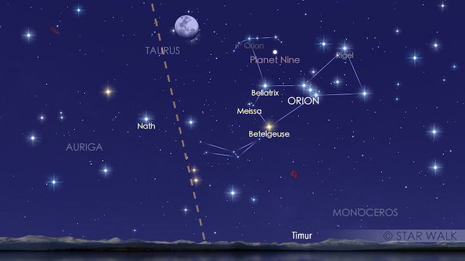 Bintang Sirius di rasi Canis Major, Betelguese dan Rigel di rasi Orion juga Aldebaran di rasi Taurus sebagai panduan.