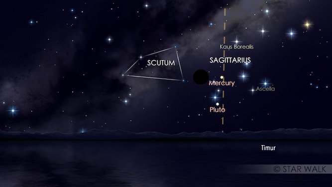 Mulai pertengahan Januari, Merkurius yang bisa ditemukan di Rasi Sagittarius terbit lebih awal dan memberi kesempatan pengamat untuk melihat planet ini berada cukup tinggi di horison sebelum Matahari terbit.