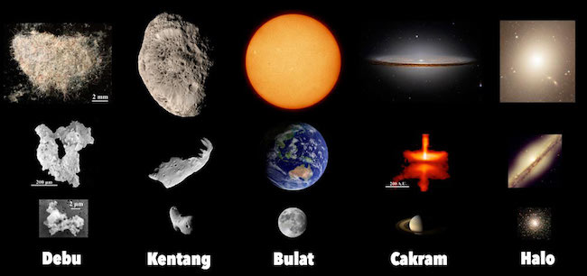 Di alam semesta, kita akan menemukan berbagai benda yang punya berbagai bentuk. Ada debu, asteroid, komet yang bentuknya tidak beraturan, benda-benda berbentuk bulat laksana kentang, benda bulat sempurna, piringan / cakram dan halo.