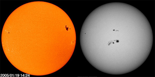 Bagi orang awam, bahkan para ilmuwan pun masih sulit untuk mengakui bahwa Matahari yang biasa dilihat setiap hari sebenarnya berwarna putih. Jadi bahkan kadang-kadang mereka memberi warna pada gambar Matahari yang sebenarnya berwarna putih agar sesuai dengan apa yang kita harapkan.[5] Berikut adalah gambar dari Matahari yang telah “diwarnai” oleh para ilmuwan sehingga tampak kuning-jingga.