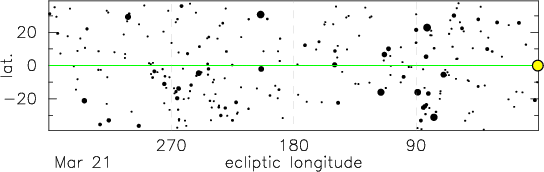 Jika kita melakukan pengamatan harian untuk melacak posisi Matahari dari waktu ke waktu, maka kita bisa melihat Matahari bergerak mengikuti garis ekliptika. Gerak tahunan Matahari di sepanjang garis ekliptika menghasilkan perubahan posisi Matahari melintasi 12 rasi bintang yang kita kenal sebagai zodiak.