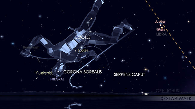 Selain Quadrantid, pengamat juga akan disuguhi kehadiran Mars dan Jupiter yang terbit beriringan sejak pukul 01:42 WIB dan 01:48 WIB.
