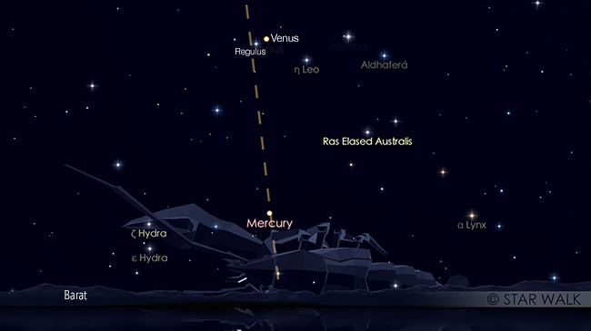 Venus, si bintang kejora masih tinggi di langit senja selama bulan Juli dan tetap setia di rasi Leo dengan kecerlangan -4 magnitudo. Venus bisa diamati sampai pukul 20:40 waktu lokal.