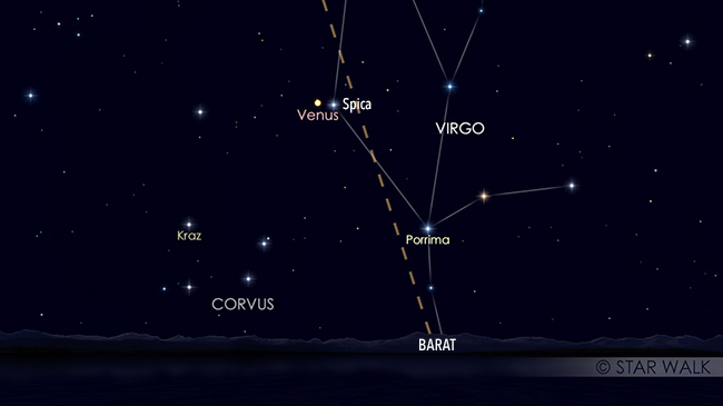 Pengamat bisa menikmati Bintang Kejora dan Spica, si bintang terang di rasi Virgo yang berpasangan di langit senja setelah Matahari terbenam. Keduanya hanya terpisah 1,5º dan tampak beriringan menuju ufuk barat. Venus terbenam lebih dahulu pada pukul 20:36 WIB disusul Spica pada pukul 20:44 WIB. Venus tampak terang dengan kecerlangan -4,2 magnitudo sedangkan Spica 0,95 magnitudo.